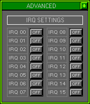 Activates the IRQ Setting Window. To shield an IRQ click to turn On/Off.